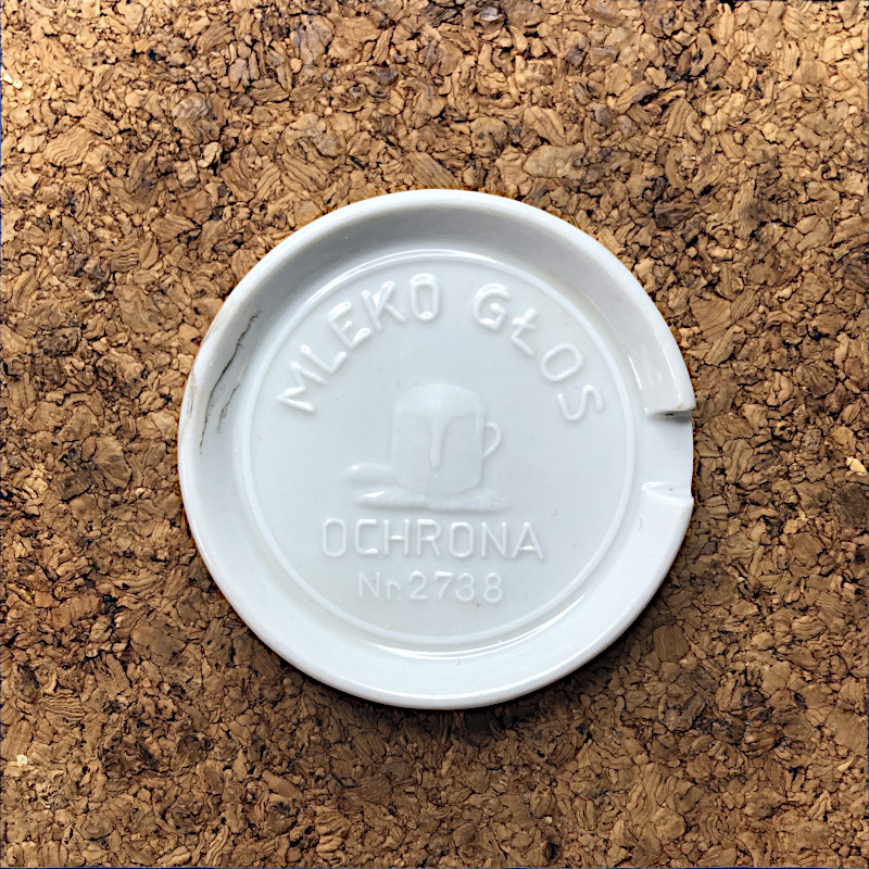 - znaki szczególne :: awers = wpisany łukowato w wypukły okrąg napis „MLEKO GŁOS”; pośrodku okręgu znajduje się wypukły motyw ozdobny przedstawiający garnek z kipiącym mlekiem a pod nim dwuwierszowy napis „OCHRONA / Nr 2738”