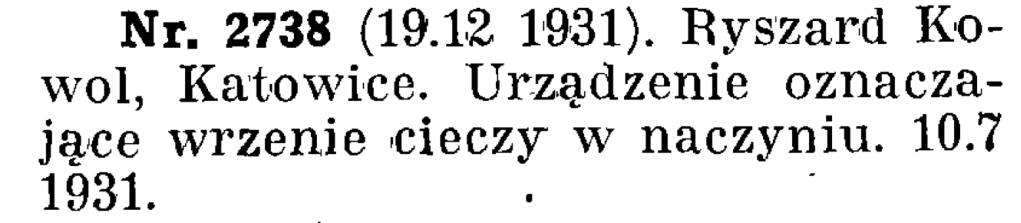 PS 2 :: autorem zastrzeżonego 19 grudnia 1931 r., pod numerem 2738, wzoru użytkowego był Ryszard Kowol z Katowic.