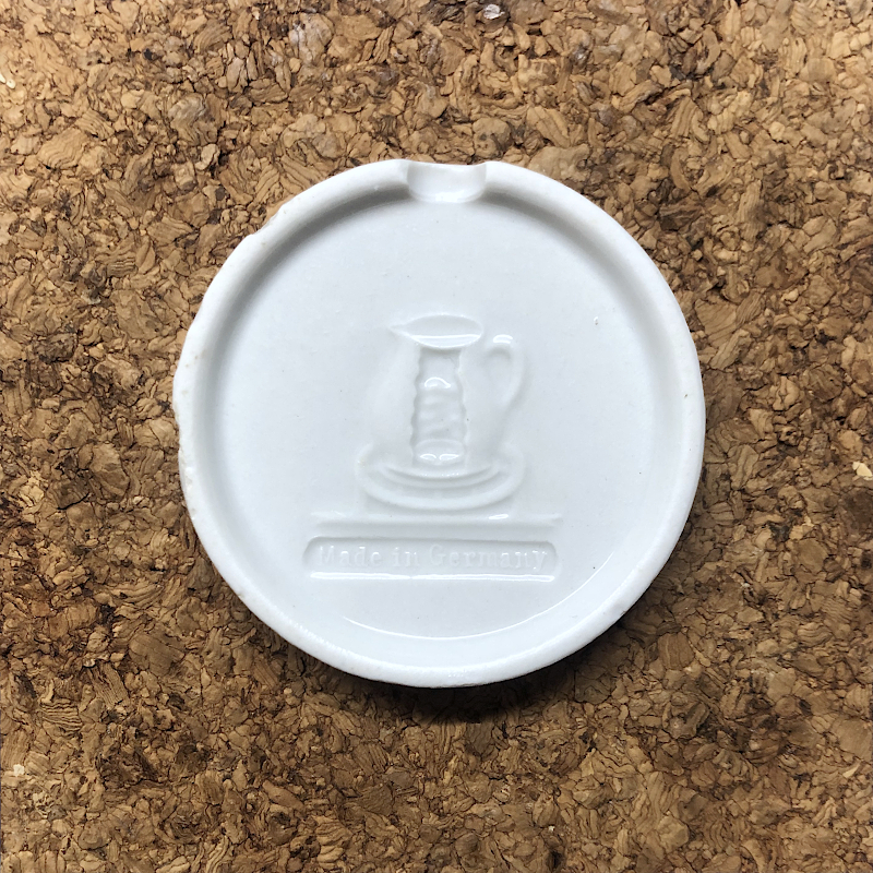 - znaki szczególne :: awers = stylizowany, wypukły relief przedstawiający garnek ustawiony na kuchence z którego kipi mleko; rewers = stylizowany, wypukły relief przedstawiający garnek ustawiony na kuchence w którym widoczny jest włożony krążek i gotujące się, niekipiące mleko a pod tym motywem w owalnie zakończonym, wklęsłym polu wypukły napis Made in Germany.