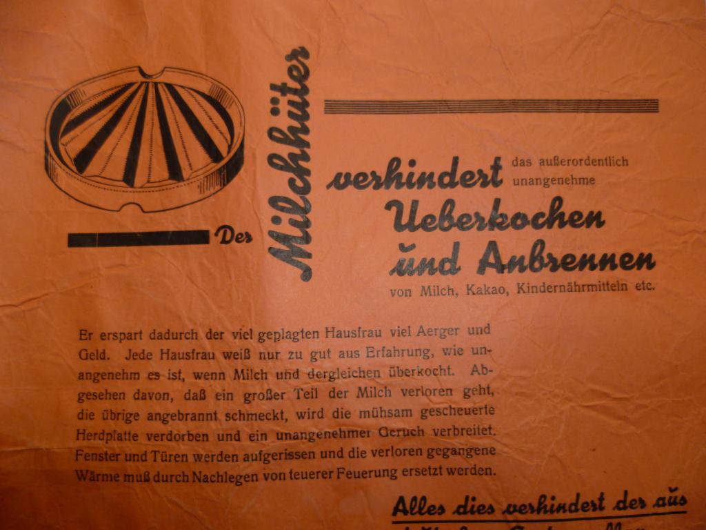 Oszczędza w ten sposób zmartwionej gospodyni domowej wielu kłopotów i pieniędzy. Każda gospodyni domowa wie z doświadczenia, jak nieprzyjemne jest kipienie mleka i tym podobnych. Oprócz tego, że traci się dużą część mleka, a reszta ma smak przypalenia, mozolnie wyszorowana płyta kuchenna ulega zniszczeniu i unosi się nieprzyjemny zapach. Okna i drzwi otwiera się na oścież, a utracone ciepło należy uzupełniać, dodając drogie ogrzewanie. Temu wszystkiemu zapobiega {…}