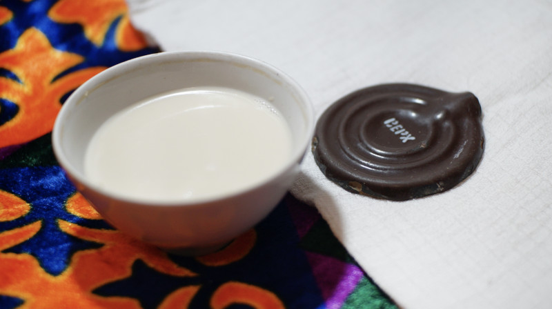 Uprawianą w Kazachstanie, powszechną tradycją było picie herbaty ze świeżo zagotowanym mlekiem. Wszyscy pokochali bogatą w smaku i piękną kolorystycznie kazachską mleczną herbatę! W obecności gości była to cała wyjątkowa uroczystość, podczas której z dużego drewnianego kredensu wyjmowano kolorowe piale [czarki], w rondelku zaparzono czarną herbatę i świeżo zagotowane mleko było gotowe do spożycia. Jeśli jednak cofniemy się pamięcią do czasu, który nastąpił zaledwie kilka godzin przed przybyciem gości – kuchnia była najbardziej chaotycznym miejscem na ziemi! Było tam pełno przedmiotów i dźwięków porozrzucanych po całym pomieszczeniu, których jeszcze nie można było połączyć. I trzeba przyznać, że gotowanie mleka w kuchni radzieckiej miało swój specyficzny dźwięk.