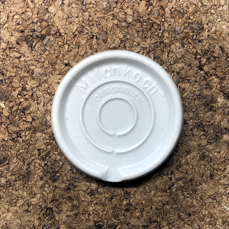 znaki szczególne :: awers = dwa koncentryczne wypukłe okręgi, z z przerwą kierującą powietrze do głównego otworu odprowadzającego, da łukowate, wypukłe napisy, górny „Milchkoch” i dolny ges. geschützt; rewers = dwa koncentryczne wypukłe okręgi, z z przerwą kierującą powietrze do głównego otworu odprowadzającego