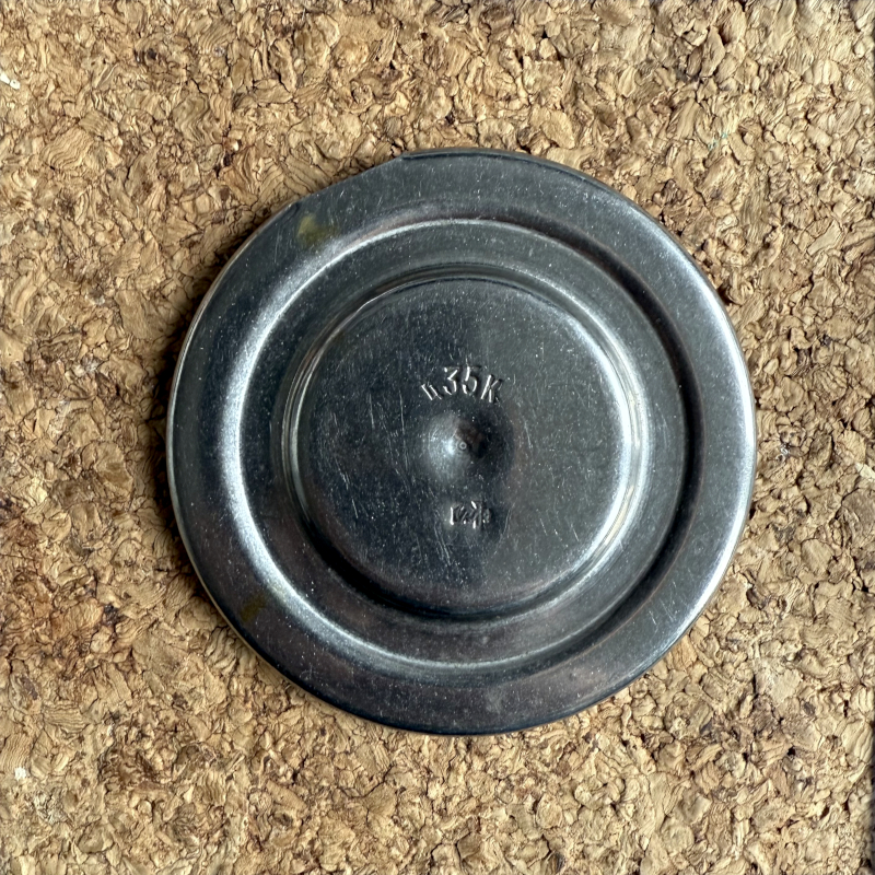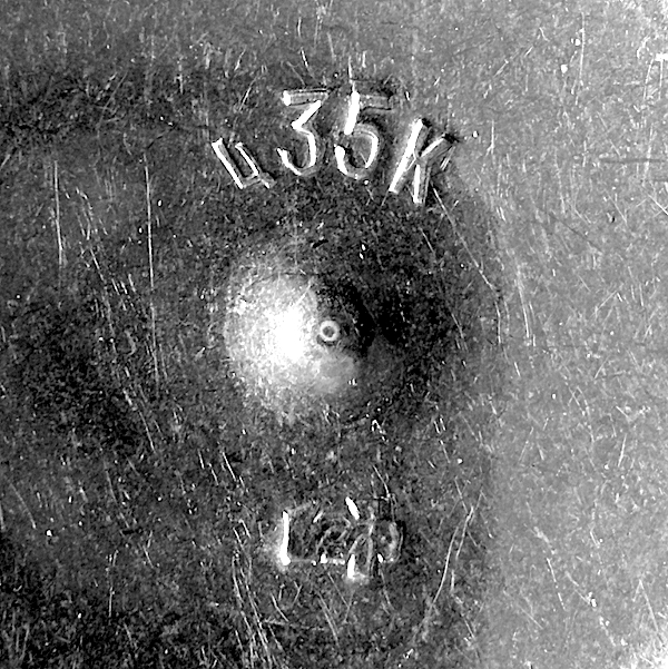 znaki szczególne :: awers = wypukły, koncentryczny pierścień i wypukły punkt pośrodku krążka,; rewers = wklęsły, koncentryczny pierścień i wklęsły punkt pośrodku, nad nim wybita cena ц35к (35 kopiejekk), pod punktem wybity znak firmowy producenta (nieczytelny)