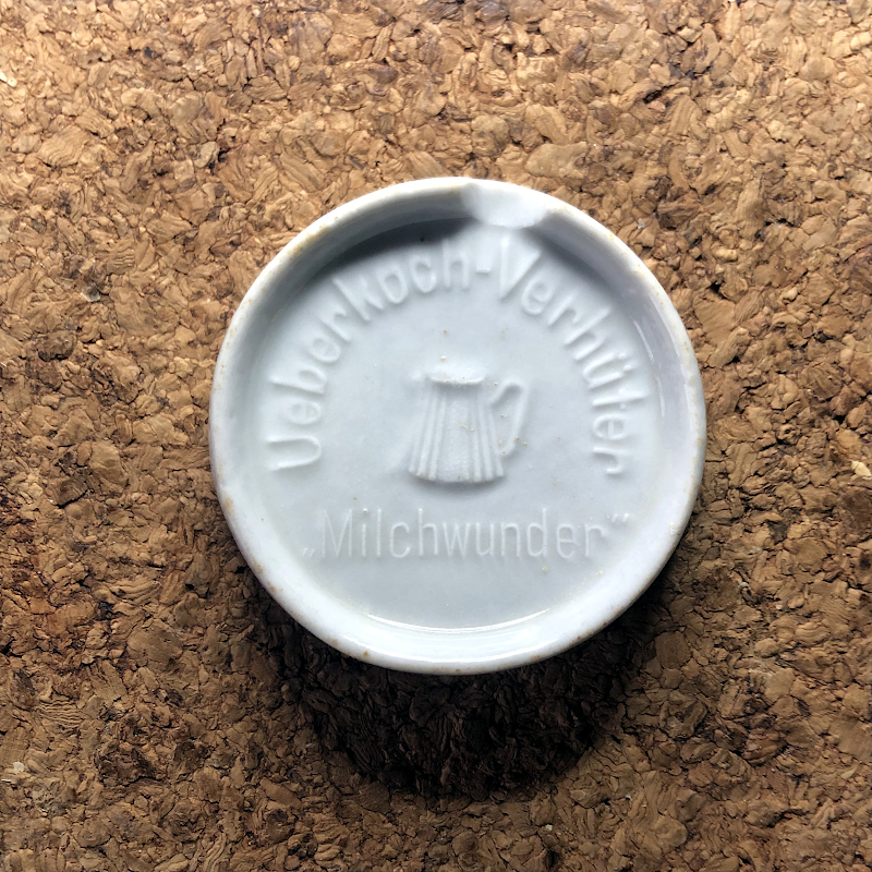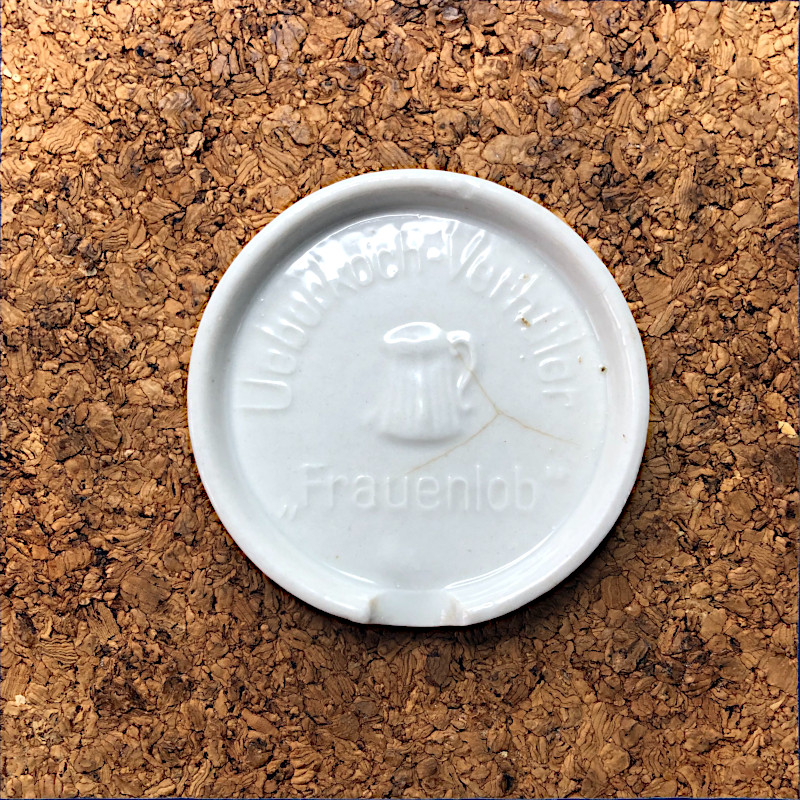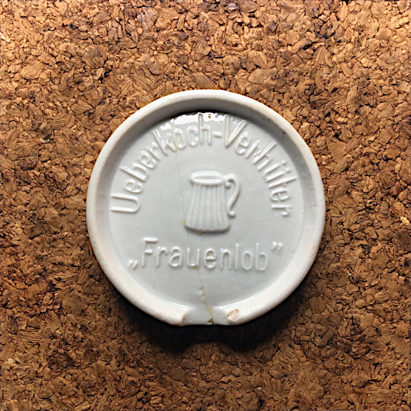 - znaki szczególne :: awers = wpisany łukowato w okrąg napis „Ueberkoch-Verhüter”; pośrodku znajduje się wypukły motyw ozdobny przedstawiający garnek z kipiącym mlekiem a pod nim napis „Frauenlob”; rewers :: centralnie umieszczone wypukłe koło o średnicy 29 mm